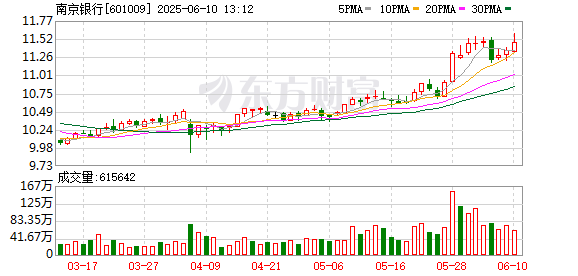 截至6月9日收盘,南京银行A股股价为11.35元/股,在其公告中所提到的5月13日至6月9日期间,该行股价区间涨幅超过6%。近30个交易日,南京银行股价整体涨幅达8.72%。